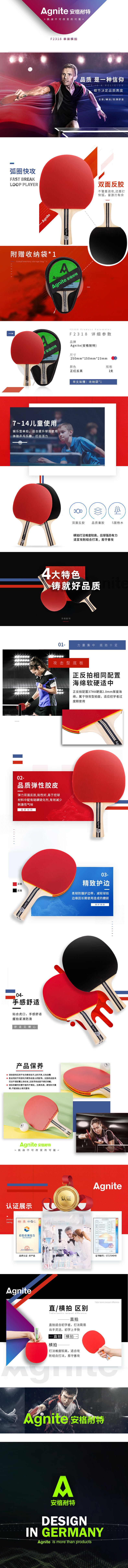 安格耐特F2318二星乒乓球拍(红+黑)(横拍)(单支装)