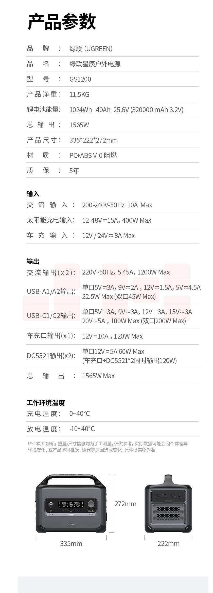 绿联 星辰户外电源GS1200W 自驾露营家用应急备用电池