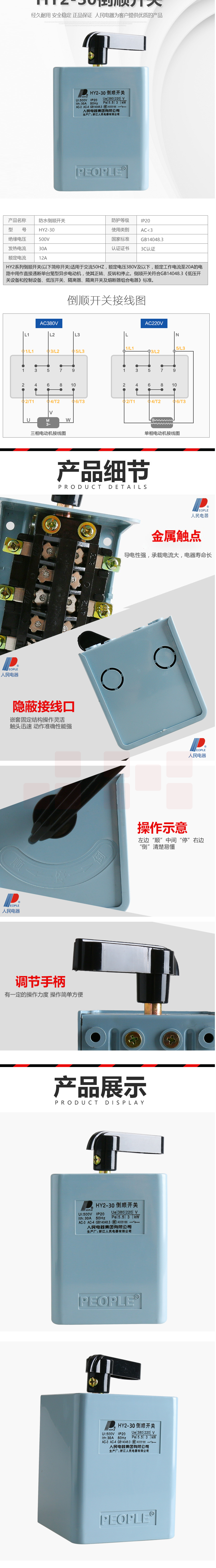 人民电器 HY2-30A 倒顺开关 30A电机正反转可逆 380V