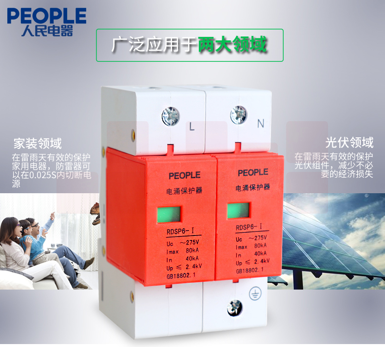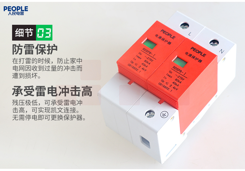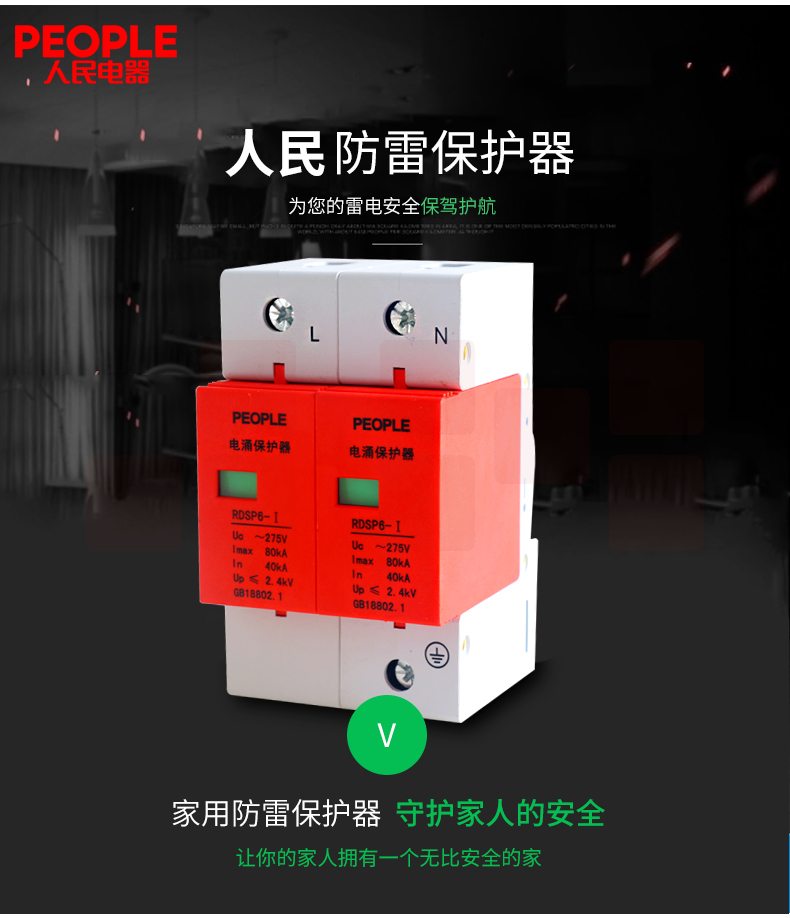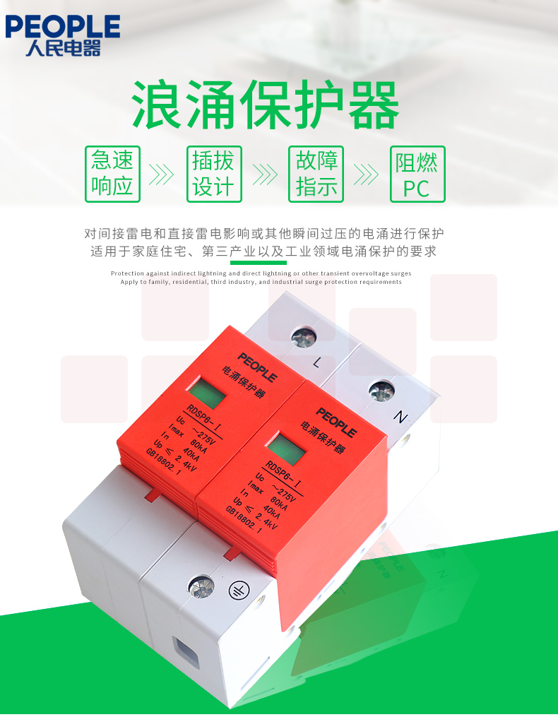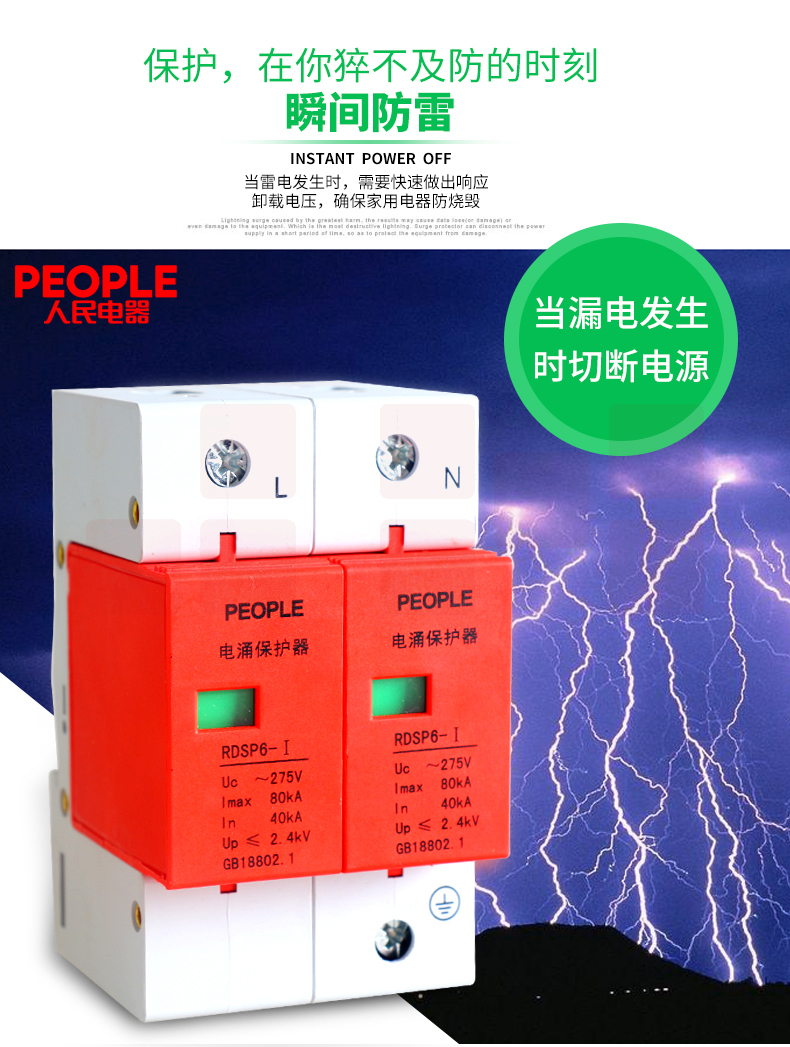民电器 防雷器浪涌保护器2P 避雷器 220V RDSP6-80KA Uc275