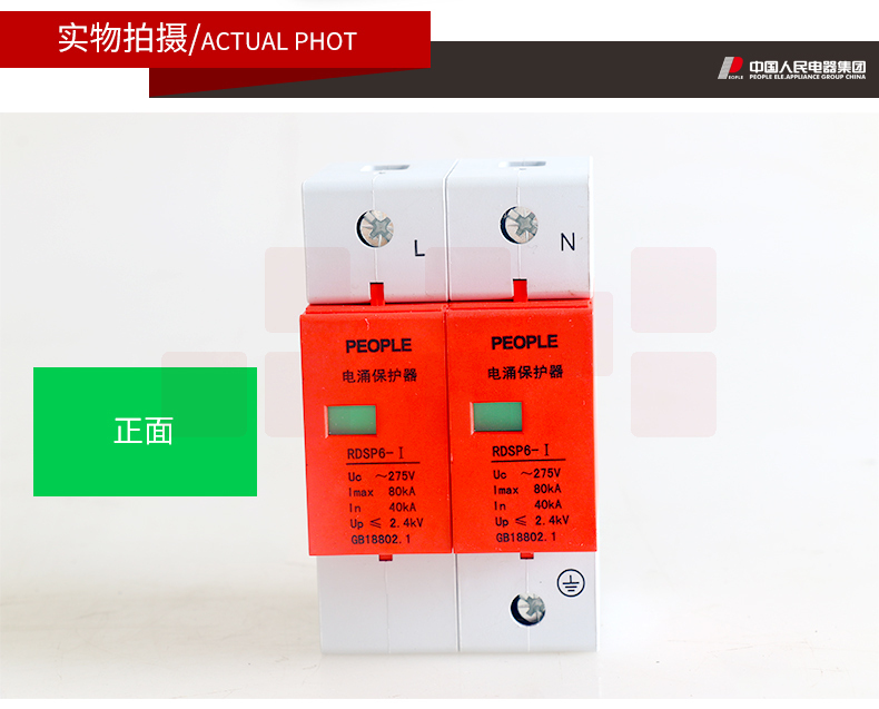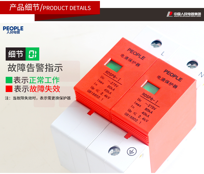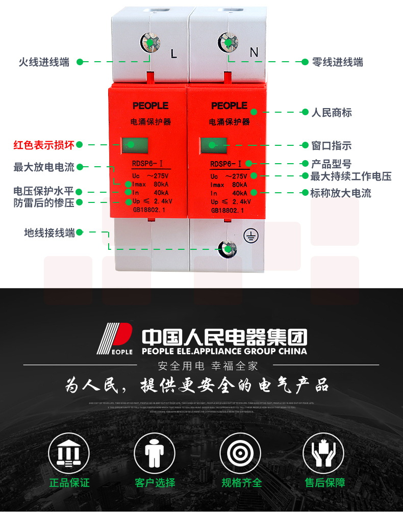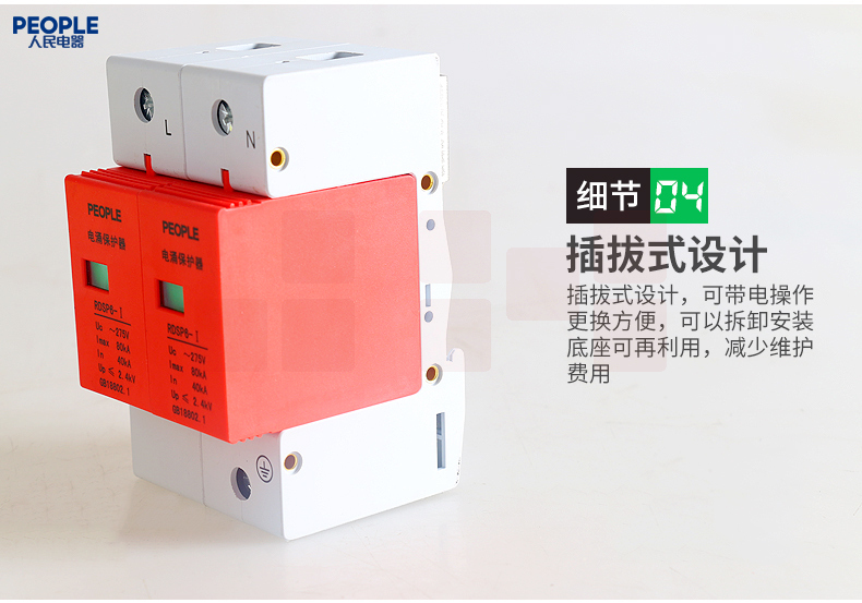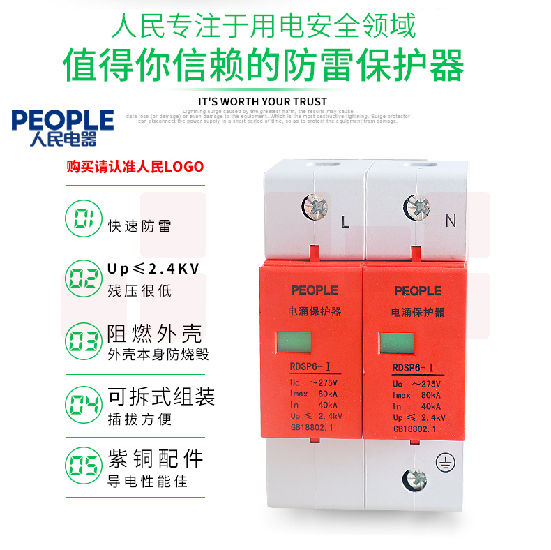 民电器 防雷器浪涌保护器2P 避雷器 220V RDSP6-80KA Uc275