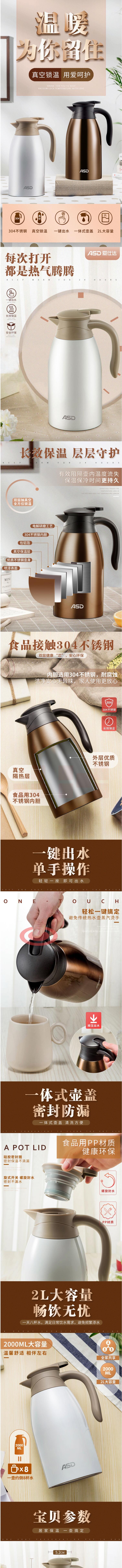 爱仕达 2.0L 保温壶 304不锈钢真空保温瓶 暖瓶 纯净白