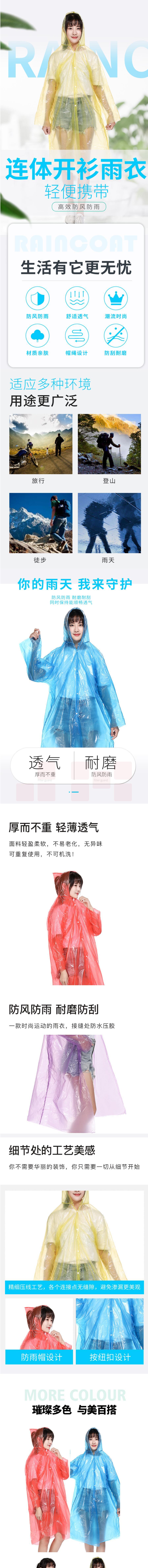 谋福 172成人四合扣雨衣PE连体开衫雨衣10件/包 单件价格