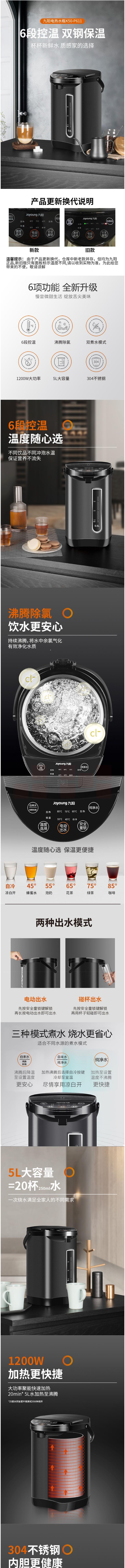 九阳 K50-P611 电热水壶 5L大容量六段保温304不锈钢 烧水壶