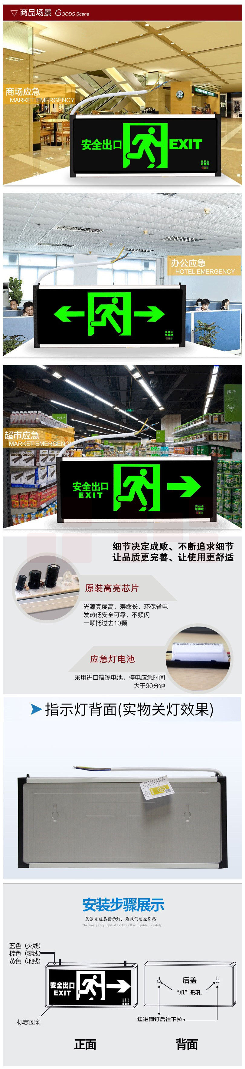 安全出口指示灯 尺寸:600*25*200