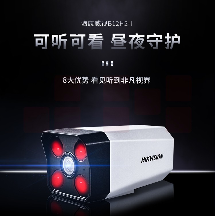 海康威视 DS-IPC-B12H2-I 摄像头室外夜视高清200万 网络监控器录音频摄像头户外厂区商铺
