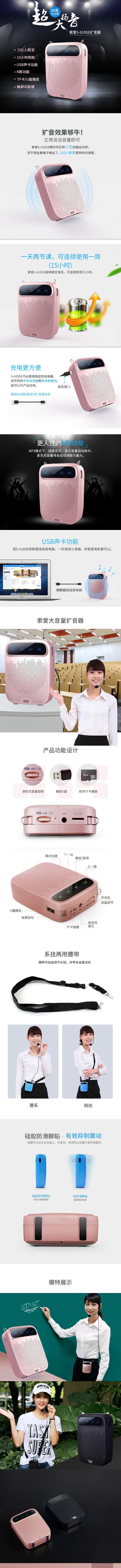 索爱 S-618SE 10W大功率便携式小蜜蜂扩音器 教学专用教师导游扩音 (玫瑰金 睿智黑下单备注颜色)