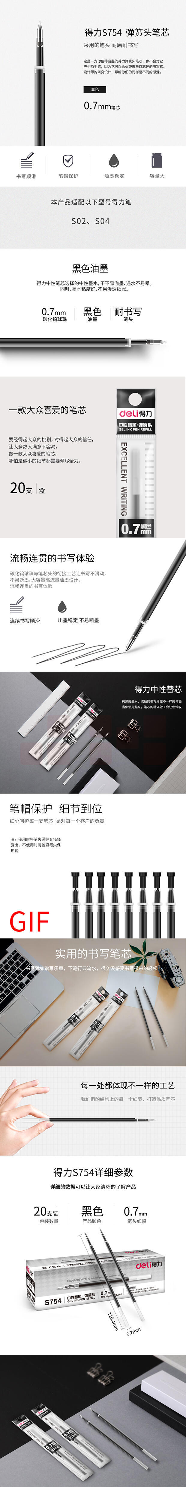 得力S754弹簧头中性笔芯0.7mm (黑)20支/盒 单支价格