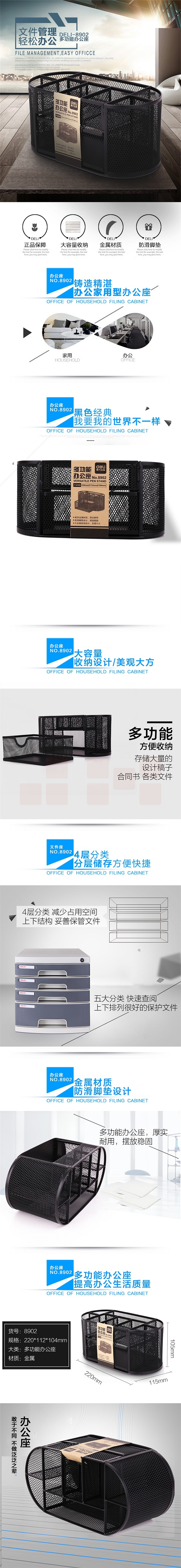 得力8902金属网 文具收纳盒 九格组合笔筒 黑色