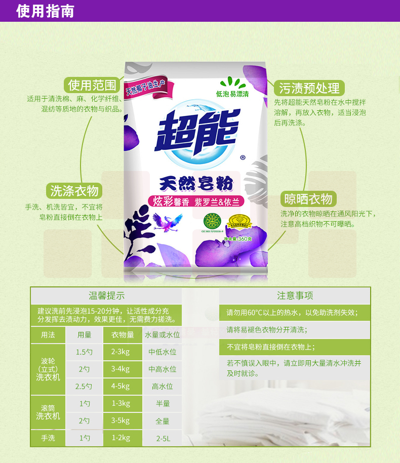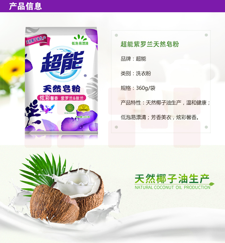 超能(CHAONENG)天然皂粉360g 18袋/件