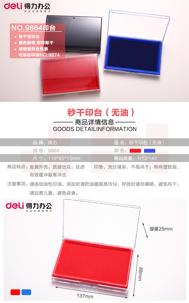 得力(deli) 单色快干印台 9864 蓝色