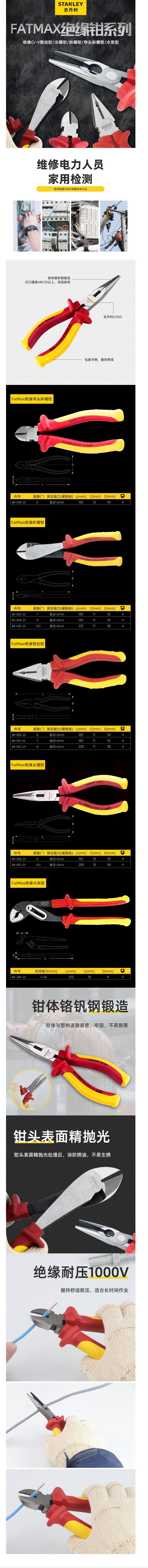 史丹利(STANLEY)绝缘斜嘴钳斜口钳电工斜咀钳子6英寸 84-009-23 货号:JC