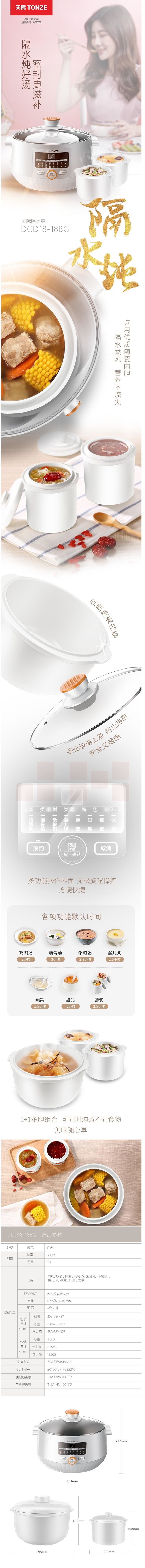 天际(TONZE) DGD18-18BG 1.8L 电炖锅 电炖盅隔水炖 煮粥煲汤锅 燕窝炖盅 货号:WY