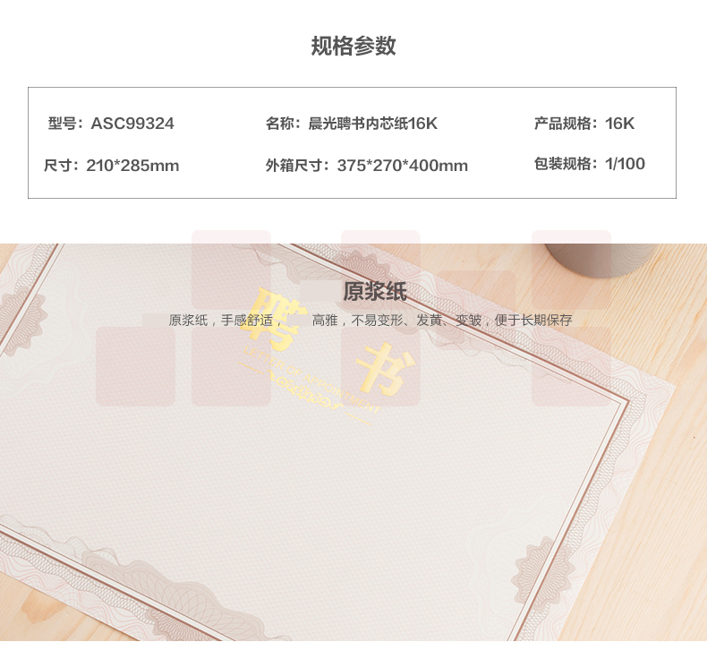 晨光 16K 聘书内芯纸 聘书纸 50张 ASC99324