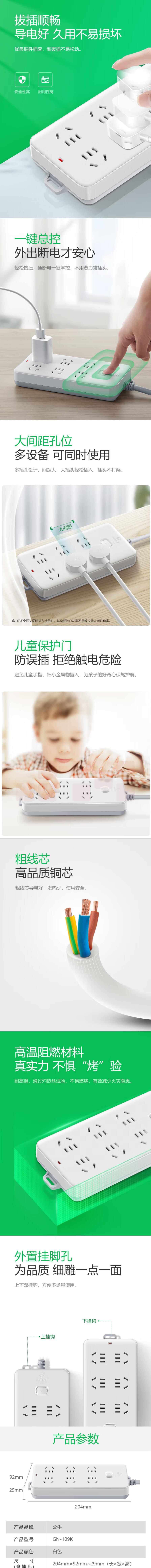 公牛 接线板 GN-109K 6位总控 无线 插排移动插座插座