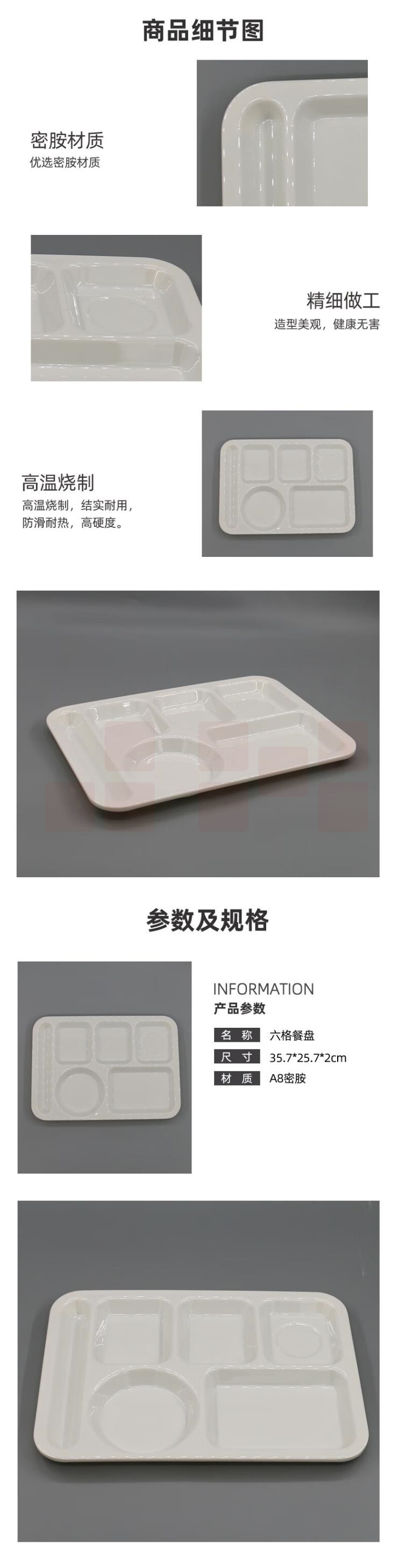 密胺快餐盘六格 多格盘分格餐盘白色塑料盘子学校食堂餐 货号:JC